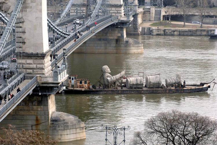 DONDERDAG – Een 12 meter hoog standbeeld van de Russische leider Lenin wordt in gedeelten door de Hongaarse hoofdstad Boedapest vervoerd. Het beeld wordt binnenkort voor filmopnames gebruikt.