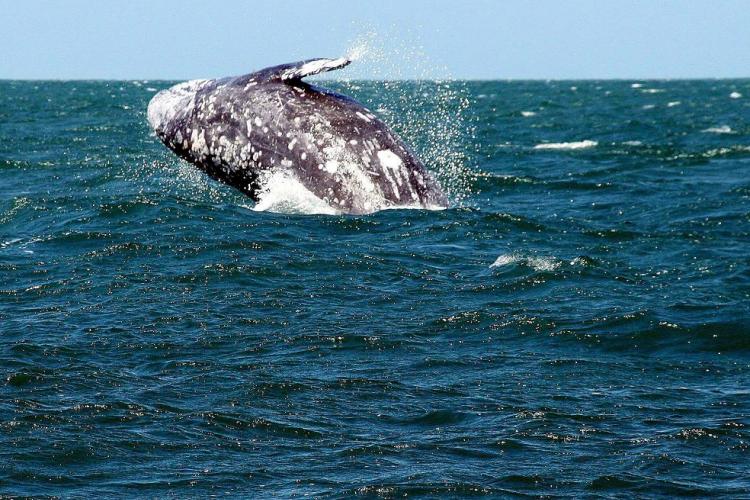 DONDERDAG – Een walvis springt uit het water in de Stille Oceaan. In deze tijd van het jaar reizen duizenden toeristen naar het Mexicaanse kustgebied om walvissen te bekijken.