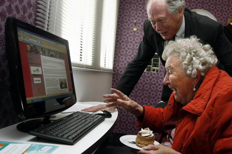 ZATERDAG – Bewoonsters van woonzorgcentrum De Toonladder in Almere krijgen computerles in de computerplusbus. De bus van het Nationaal Fonds Ouderenhulp en KPN gaat langs bij woonzorgcentra, verzorgingshuizen en andere openbare locaties om ouderen hun computerangst te laten overwinnen.
