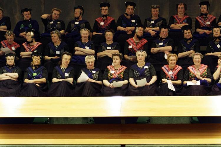 WOENSDAG Een groep bezoeksters van de Tweede Kamer laat geen misverstand bestaan over hun afkomst. Getooid in Staphorster klederdracht bevolken de vrouwen de tribune om het vragenuurtje te volgen.