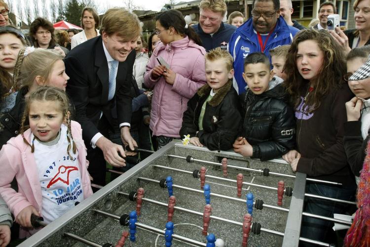 WOENSDAG Prins Willem-Alexander (l.) speelt een potje tafelvoetbal met Utrechtse kinderen. De prins bezoekt een sportspeeltuin waar kinderen gratis kunnen sporten.