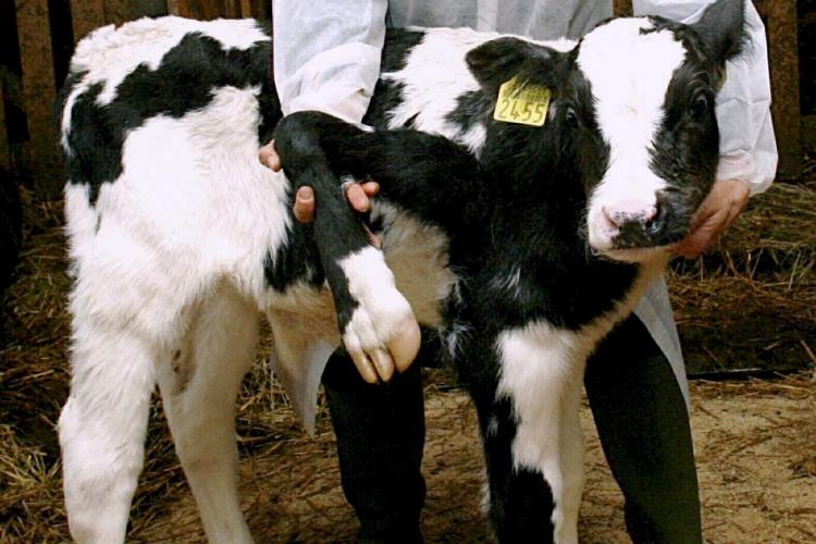 VRIJDAG In Letland is een kalf geboren dat vijf poten heeft. Het dier, dat April wordt genoemd, kwam ter wereld op het landbouwbedrijf Stirnas in Tukums.