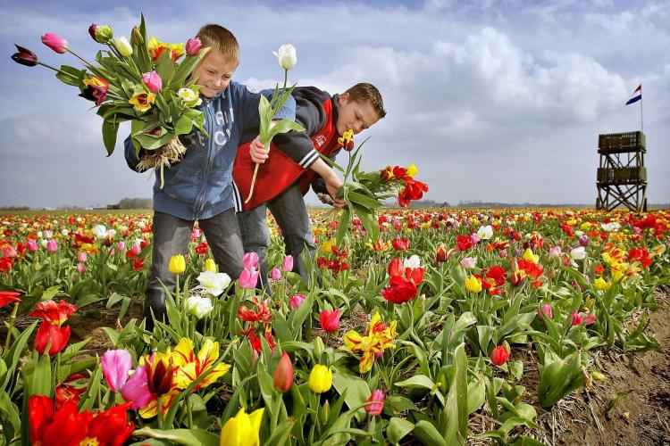 ZATERDAG De tulpenpluktuin in Marknesse in de Noordoostpolder is geopend voor publiek. Bezoekers kunnen op 5000 vierkante meter een bosje bloemen plukken. Keuze genoeg, er zijn 300.000 bollen geplant, in een mix van vijftig verschillende rassen. De tuin is tot en met mei geopend.