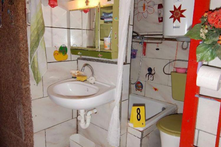 WENEN - Toilet en douche in de kelder waar Elisabeth F. en haar drie kinderen vele jaren zonder licht en hoop verborgen werden gehouden. - Foto EPA