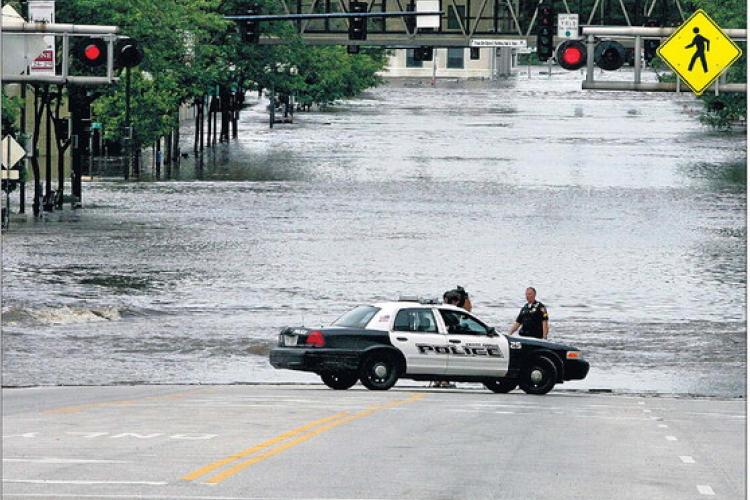 ZATERDAG – Terwijl een hittegolf het oosten van de Verenigde Staten teistert, worden andere delen van het land getroffen door extreme wateroverlast. In Cedar Rapids, Iowa (foto), moest wegens hoog water een ziekenhuis ontruimd worden. Ook bewoners van 3000 huizen moesten het hogerop zoeken. Een spoorbrug stortte in en honderd stratenblokken stonden blank.