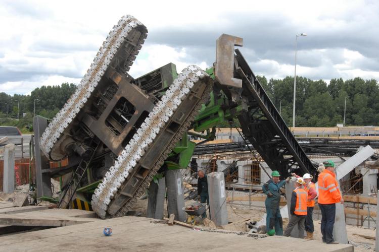 DINSDAG – Op een bouwterrein aan de Nieuwe Leeuwarderweg in Amsterdam-Noord is een kraan omgevallen tijdens werkzaamheden aan de nieuwe metrolijn. De schade is groot, maar er vielen geen gewonden.