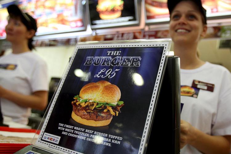 DONDERDAG – Bij Burger Kingrestaurant in Londen is het duurste broodje hamburger ter wereld te krijgen. Het broodje, dat 95 Britse pond (120 euro) kost, is belegd met Wagyuvlees, witte truffels en in witte wijn gebakken uien. De meeropbrengst van het tijdelijke artikel gaat naar een Brits goed doel.