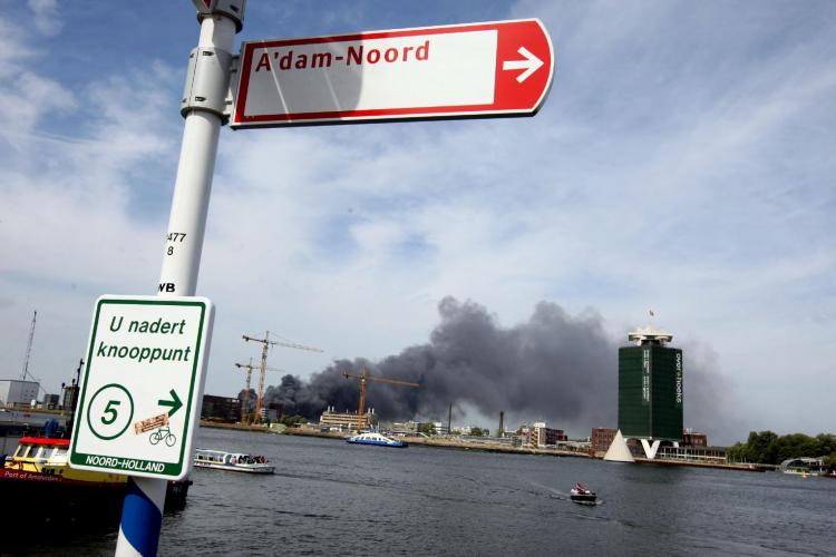 Donderdag – Bij meubelzaak Leen Bakker aan de Klimopweg in Amsterdam heeft donderdag een grote brand gewoed. Dikke zwarte rookwolken waren tot in het centrum van de stad te zien. - Foto ANP