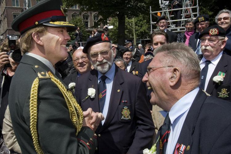 MAANDAG – Bijna 4000 veteranen en militairen nemen deel aan een defilé door de binnenstad van Den Haag. De parade wordt afgesloten door een stoet militaire voertuigen. Oud-strijders brengen een militair saluut aan prins Willem-Alexander. - Foto's ANP, EPA, Ruben Meijerink, AFP.
