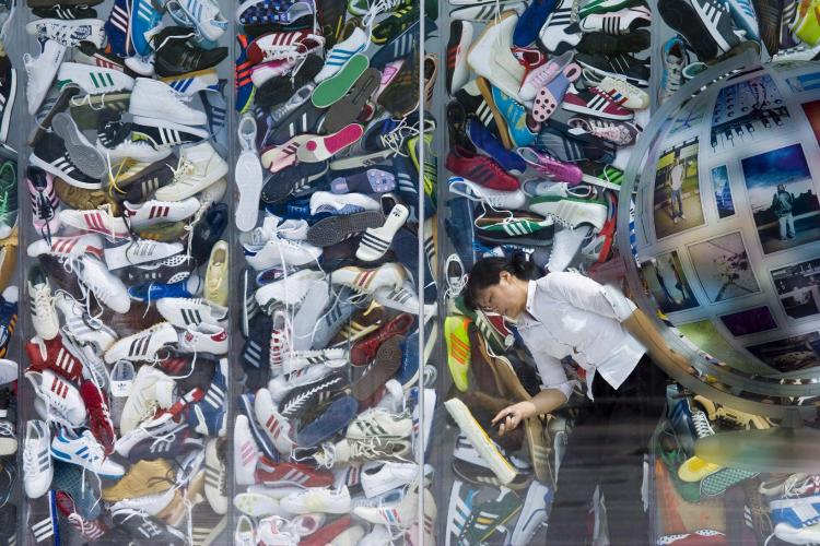 DONDERDAG – Ramen lappen zonder strepen te maken. Een medewerker doet er alles aan om het warenhuis van het Duitse sportconcern Adidas er zo goed mogelijk uit te laten zien voordat het opengaat. De winkel staat in het commerciële centrum van Peking. Daar wordt hard gewerkt om de zaken op orde te hebben voordat de Olympische Spelen op 8 augustus beginnen.