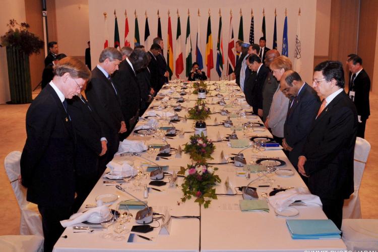MAANDAG – Verschillende wereldleiders, onder wie de Amerikaanse president Bush, de Britse premier Brown en de Franse president Sarkozy hebben zich verzameld in Japan voor de driedaagse top van de G-8 die in het noordelijke Toyako begint. Meer dan 20.000 politieagenten hebben het afgelegen vakantieoord in de bergen afgesloten om te voorkomen dat de top van rijkste industrielanden wordt verstoord door antiglobalisten. - Foto's EPA, ANP, Dick Hogewoning, FBF.NL, Dick Teske.