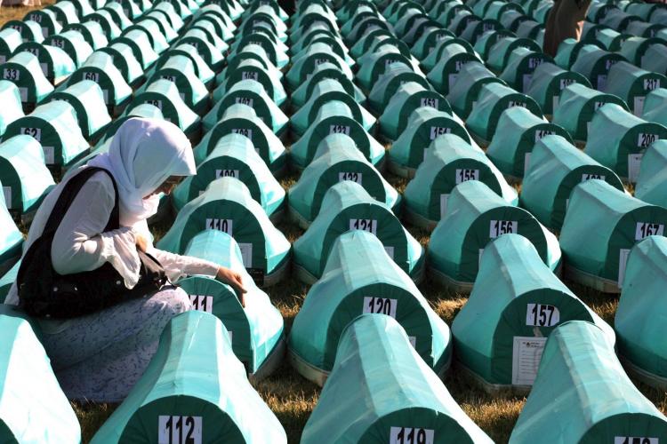 ZATERDAG – Een Bosnische vrouw rouwt bij een lijkkist van een familielid. In Srebrenica wordt de val van de moslimenclave en het daaropvolgende bloedbad herdacht. Onderdeel van de plechtigheid vormde de herbegrafenis van 308 gedode moslims. Ook in Den Haag had een herdenkingsceremonie plaats.