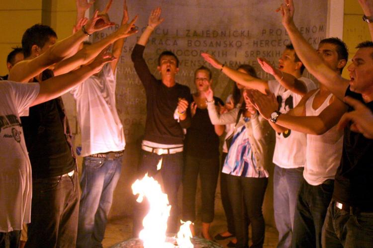 DINSDAG Bosnische moslims vieren massaal feest in de hoofdstad Sarajevo, nadat bekend is geworden dat de voormalige Bosnisch-Servische leider Radovan Karadzic is gearresteerd. - Foto EPA
