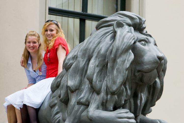 DONDERDAG Margreta Elderman uit s-Gravendeel (r.) en Jara van Tol uit Zwijndrecht zijn gehuldigd door burgemeester R. Bandell van Dordrecht. De twee 16-jarige scholieren redden vorig jaar het leven van een vrouw die in haar rolstoel tussen twee gesloten spoorbomen opgesloten zat. - Foto Dirk Hol