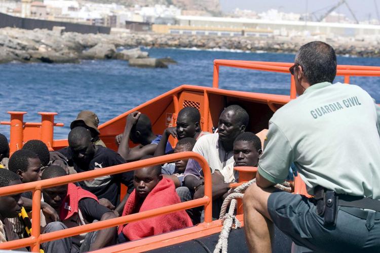 ZATERDAG De Spaanse kustwacht redt een groep van 35 Afrikaanse migranten door ze op te vangen in de haven van Almeria, aan de zuidkust van Spanje. De Afrikanen worden van een kleine, zinkende boot gehaald waarmee ze vanuit Marokko de oversteek over de Middellandse Zee maakten. Jaarlijks gebeuren er duizenden ongelukken met kleine bootjes vol met Afrikaanse migranten die Europa willen bereiken. - Foto EPA