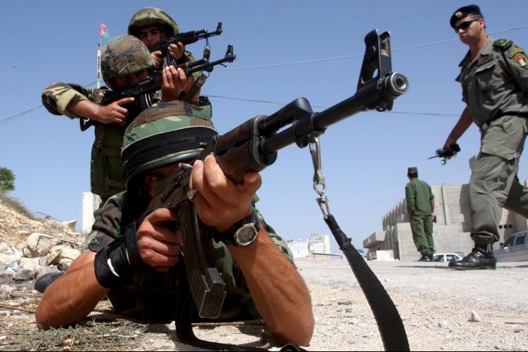 DINSDAG – Leden van de Palestijnse veiligheidsdiensten houden een oefening in de stad Hebron op de Westelijke Jordaanoever. De toekomst van een mogelijke Palestijnse staat is grotendeels afhankelijk van de kwaliteit van deze veiligheidsdienst. Tot nu toe hebben de troepen echter vrijwel altijd onder kritiek gelegen. - Foto EPA