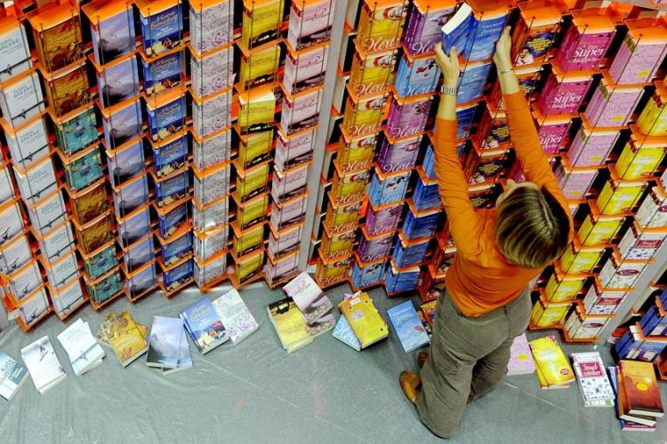 DINSDAG – Een vrouw ordent boeken op de Boekenbeurs 2008 in Frankfurt. Verwacht wordt dat de beurs honderdduizenden bezoekers zal trekken. - Foto EPA