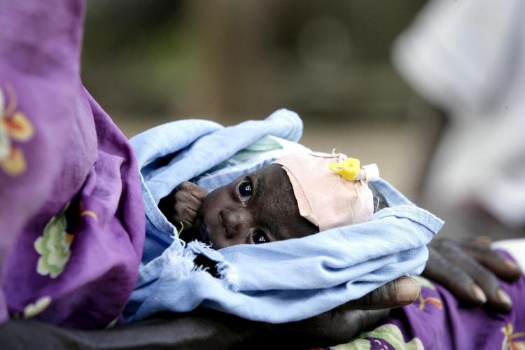 WOENSDAG – Een vrouw brengt haar kleinkind naar een voedingscentrum in een ziekenhuis in Kumi, in het oosten van Uganda. Het oosten van Afrika kampt met ernstige voedseltekorten. Vooral onder arme inwoners leidt dit tot honger en ondervoeding. Het voedselgebrek wordt veroorzaakt door extreme en langdurige droogte. - Foto EPA