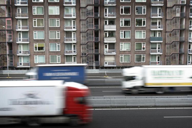 WOENSDAG – Huizen staan stevig overeind, trucks razen vastberaden voorbij. Zo is het. Tegelijk is het realiteit dat de huizenmarkt kraakt onder de kredietcrisis en dat sommige trucks binnenkort niet meer worden gemaakt, omdat bedrijven moeilijk leningen kunnen krijgen voor de aanschaf ervan. - Foto ANP