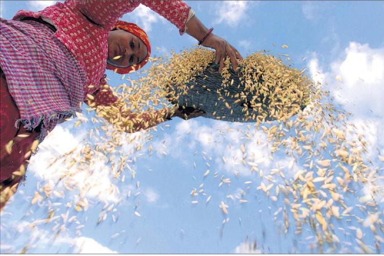 VRIJDAG – Een vrouw is bezig met de oogst van rijst in het dorpje Matatirtha, Nepal. Zo’n 80 procent van de bevolking van Nepal is afhankelijk van de landbouw. Rijst is veruit het meest verbouwde gewas. - Foto EPA