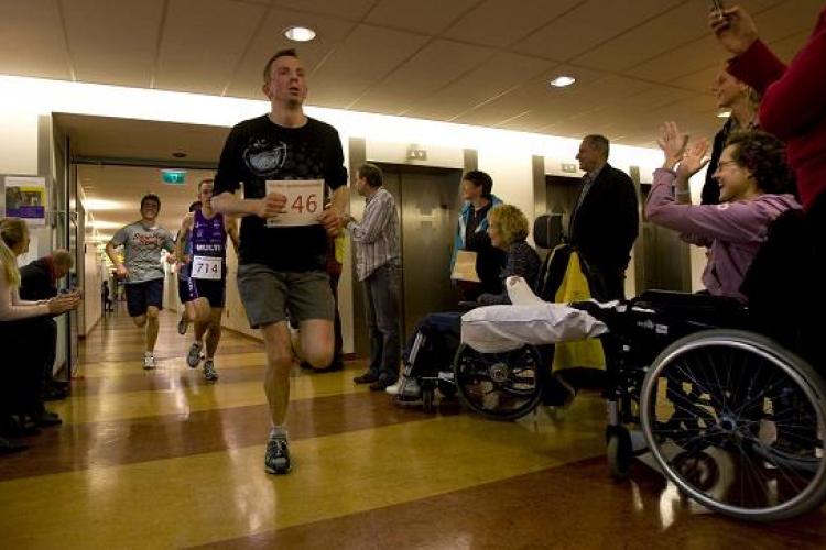 MAANDAG – Deelnemers aan de VUmc gebouwenloop draven door de gangen van het VU medisch centrum in Amsterdam. Het evenement had voor de vierde keer plaats. De opbrengst was bestemd voor het VUmc Alzheimercentrum. Deelnemers konden kiezen uit routes van 5 of 10 kilometer lang. - Foto ANP