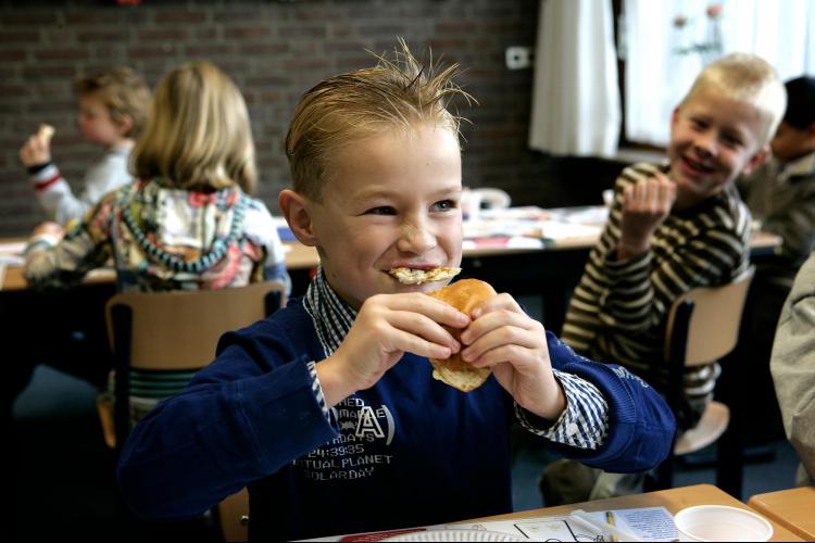 WOENSDAG – Leerlingen van de Eben-Haëzerschool in Oud-Beijerland eten met smaak bolletjes, fruit en gekookte eitjes. Dit omdat het het de Week van het Nationaal Schoolontbijt is. Op 2200 scholen wordt het ontbijt voor de leerlingen verzorgd, om op die manier aandacht te vragen voor een goede en gezonde start van de dag. - Foto Sjaak Verboom