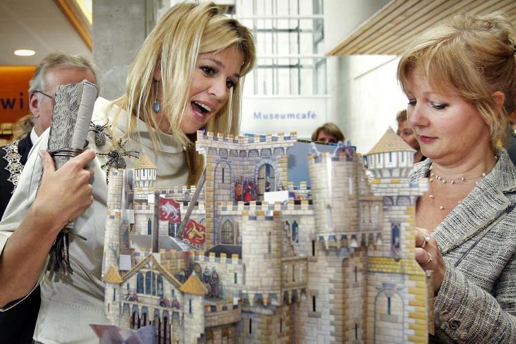 WOENSDAG – Prinses Máxima krijgt tijdens een bezoek aan de tentoonstelling ”Macht en Mystiek. Egmond in de Middeleeuwen” in het Stedelijk Museum Alkmaar een kasteelboek voor haar kinderen. De tentoonstelling maakt deel uit van de landelijke, multimediale manifestatie ”Verleden van Nederland”. De campagne heeft als doel het historisch bewustzijn te vergroten. - Foto ANP