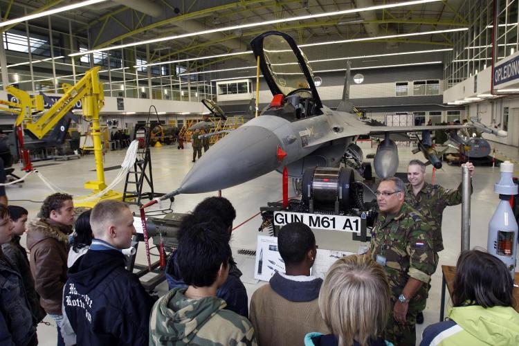 VRIJDAG – Op vliegbasis Woensdrecht (Noord-Brabant) vinden de Techniekdagen plaats. Vmbo- en mbo-leerlingen kunnen op deze dagen kennismaken met verschillende technische functies binnen de Koninklijke Luchtmacht. Foto ANP