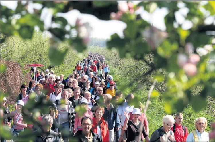 MAANDAG – De Rode Kruis Bloesemtocht heeft dit jaar een recordaantal bezoekers getrokken. Bijna 30.000 wandelaars liepen door de Betuwe. De organisatie van de wandeltocht denkt dat het record te danken is aan het weer. Wandelaars konden vier verschillende afstanden afleggen. - Foto William Hoogteyling