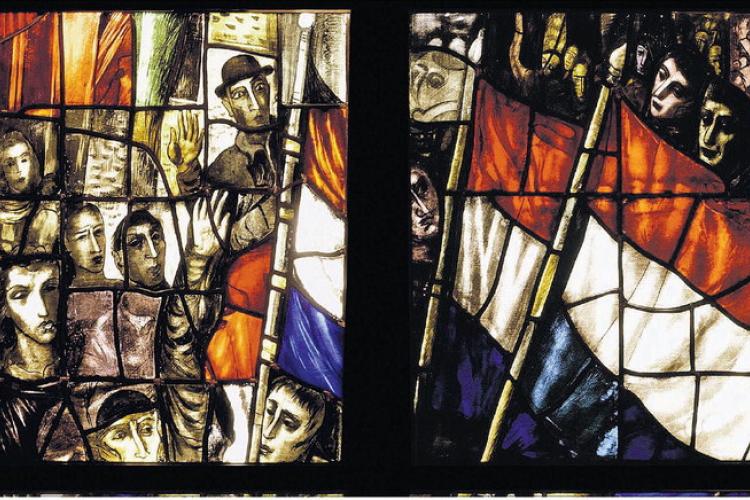 VRIJDAG – Het Bevrijdingsglas (raam 28a) van de Sint Janskerk is acht weken lang digitaal te bekijken op de site sintjan.com. - Foto Fonds Goudse Glazen/Harry Anders