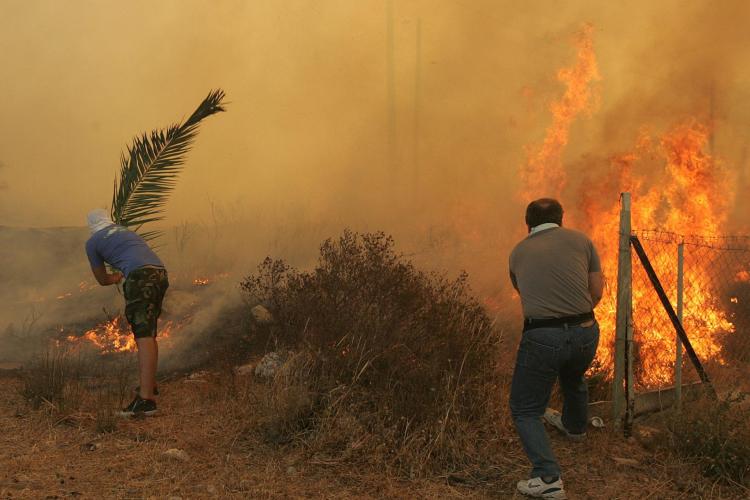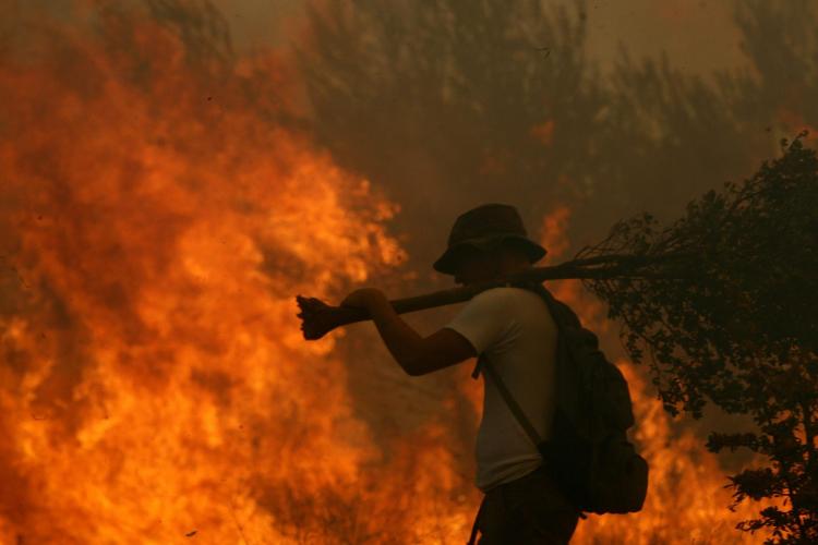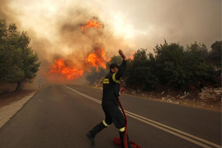 Bosbranden bij Athene legden deze week 20.000 hectare in as. Een gebied zo groot als twee keer het IJsselmeer. - EPA