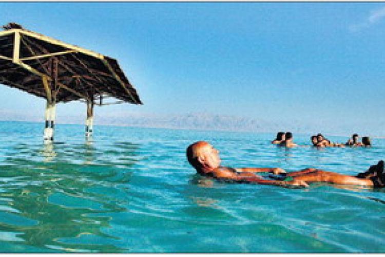 MAANDAG – Onder toeristen is de Dode Zee in Israël nog immer populair, maar het zoute meer op het laagste punt ter wereld is de afgelopen jaren behoorlijk gekrompen. Vooral doordat zijn belangrijkste waterbron, de rivier de Jordaan, steeds meer wordt ingedamd en leeggepompt voor menselijk gebruik. - Foto EPA