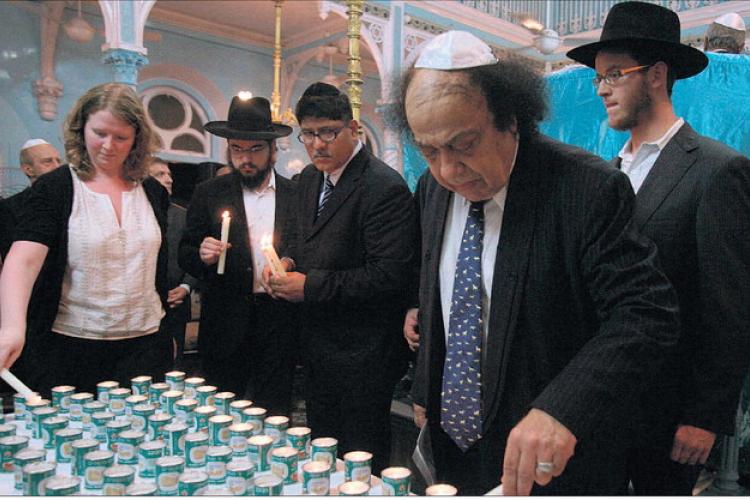 DONDERDAG – Leden van de joodse gemeenschap in de Indiase stad Bombay staken woensdag kaarsen aan voor de doden die precies een jaar geleden vielen bij een terreuraanslag in de stad. In totaal kwamen 174 mensen om het leven, onder wie leden van de joodse gemeenschap. - Foto EPA
