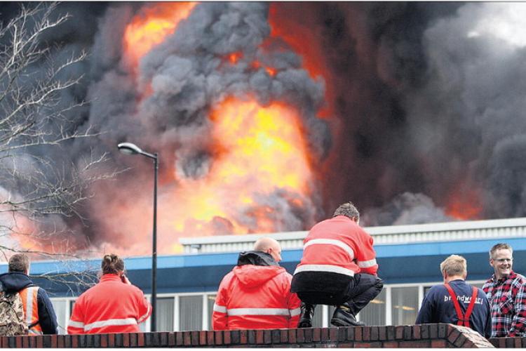 VRIJDAG – Op een bedrijventerrein in Amsterdam-Noord woedde donderdag een grote brand. Het vuur ontstond in een loods van de firma City Box, waar particulieren opslagruimte kunnen huren. Vervolgens sloegen de vlammen ook over naar een aantal naastgelegen, kleinere panden, zo liet de brandweer gisteren weten. - Foto ANP