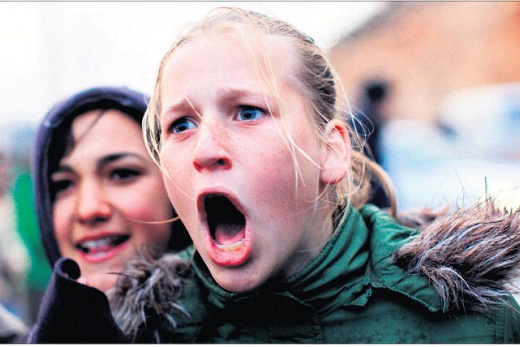 MAANDAG - Een Israëlische vrouw schreeuwde leuzen naar de politie tijdens een demonstratie in de Joodse nederzetting Ma’aleh Levona op de Westelijke Jordaanoever. De inwoners van de nederzetting verzetten zich tegen de komst van inspecteurs die bouwprojecten controleren en eventueel stilleggen. - Foto EPA
