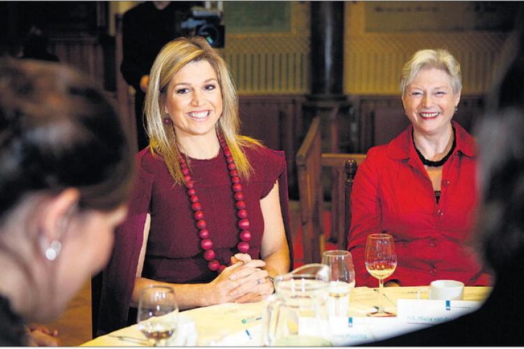 WOENSDAG - Prinses Máxima bezocht het Liemers College in Didam. Ze woonde er een les bij over omgaan met geld. - Foto ANP