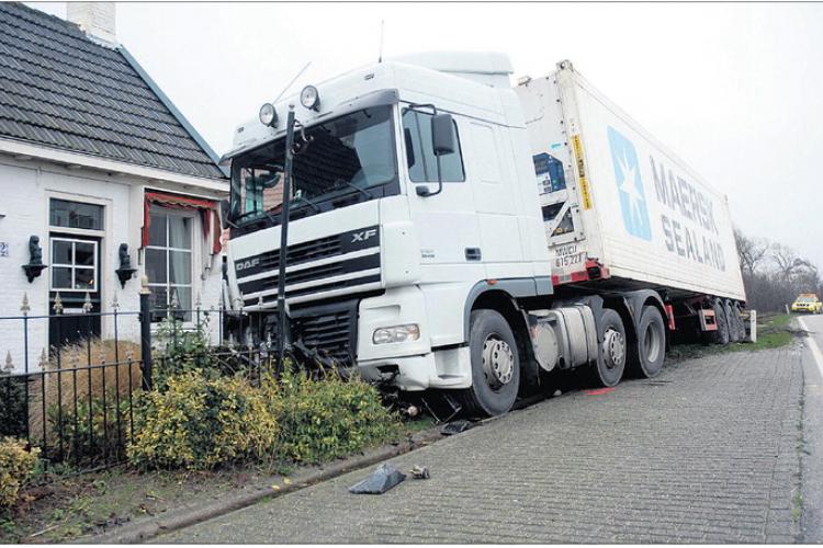 WOENSDAG – Een vrachtwagen is aan het einde van de ochtend een tuin van een woning langs de N57 bij het Zeeuwse Vrouwenpolder ingereden. De vrachtwagen reed de berm in, ramde een hek en kwam halverwege de voortuin tot stilstand. Hij miste de woning op slechts enkele meters. De bewoonster van het huis zat in de voorkamer toen ze het lawaai van de vrachtwagen hoorde. Er vielen geen gewonden. Het verkeer werd enige tijd omgeleid. - Foto Roland de Jong